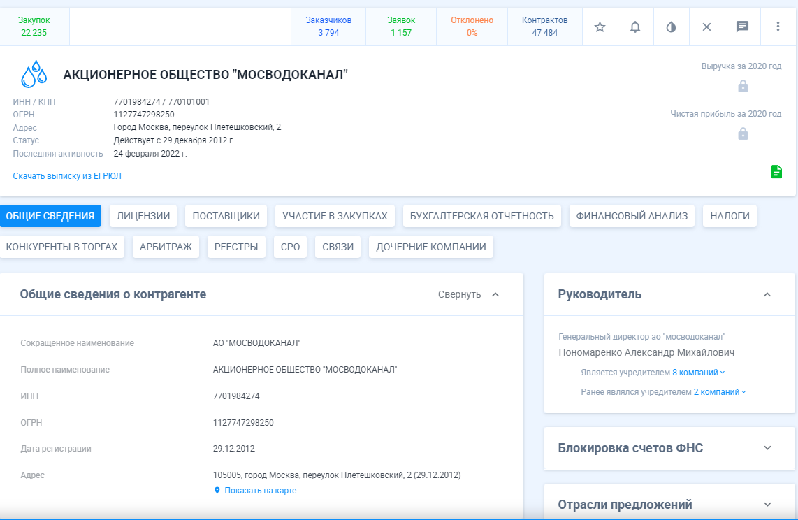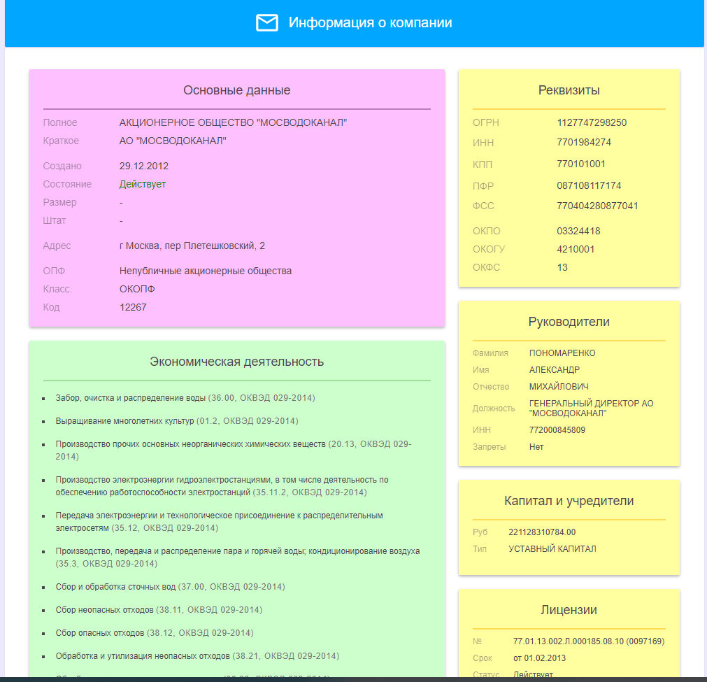 интеграция с базой пользователя — API позволяет автоматизировать процесс получения сведений о компаниях и интегрировать их в CRM системы;