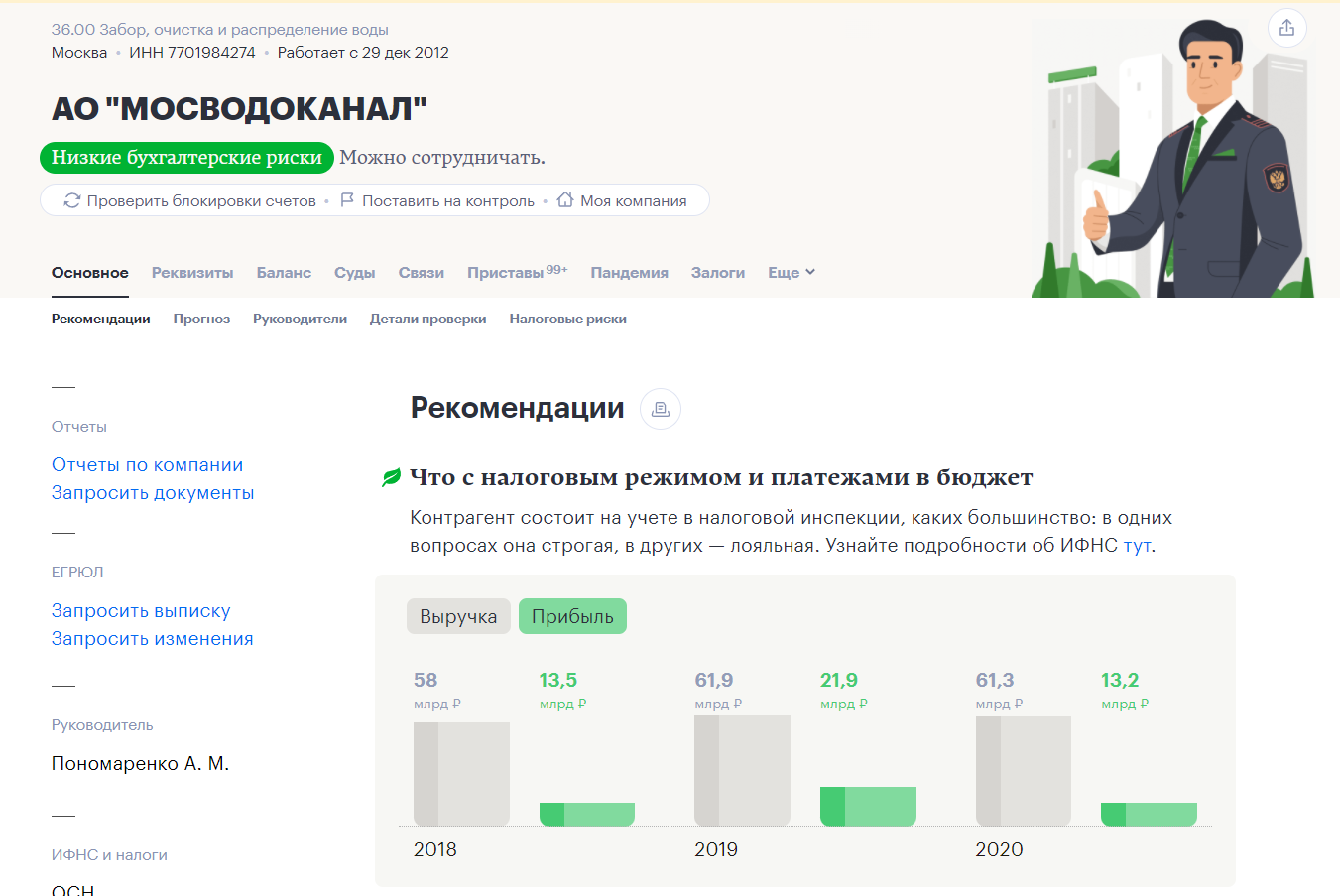 наличие индикаторов для оценки рисков – сервис показывает позитивные и негативные факты, по которым в совокупности можно сделать выводы о надежности контрагента;