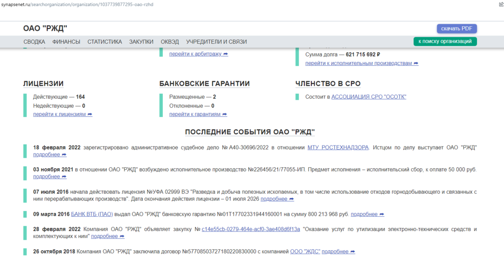 как хранятся результаты проверок — истории поиска нет, по каждой компании можно скачать отчет в формате pdf.