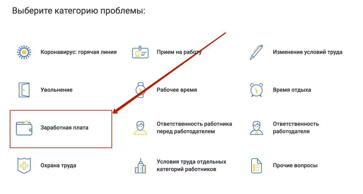 - выбрать ожидаемый результат от заявления: проведение проверки, консультация, привлечение к ответственности работодателя;