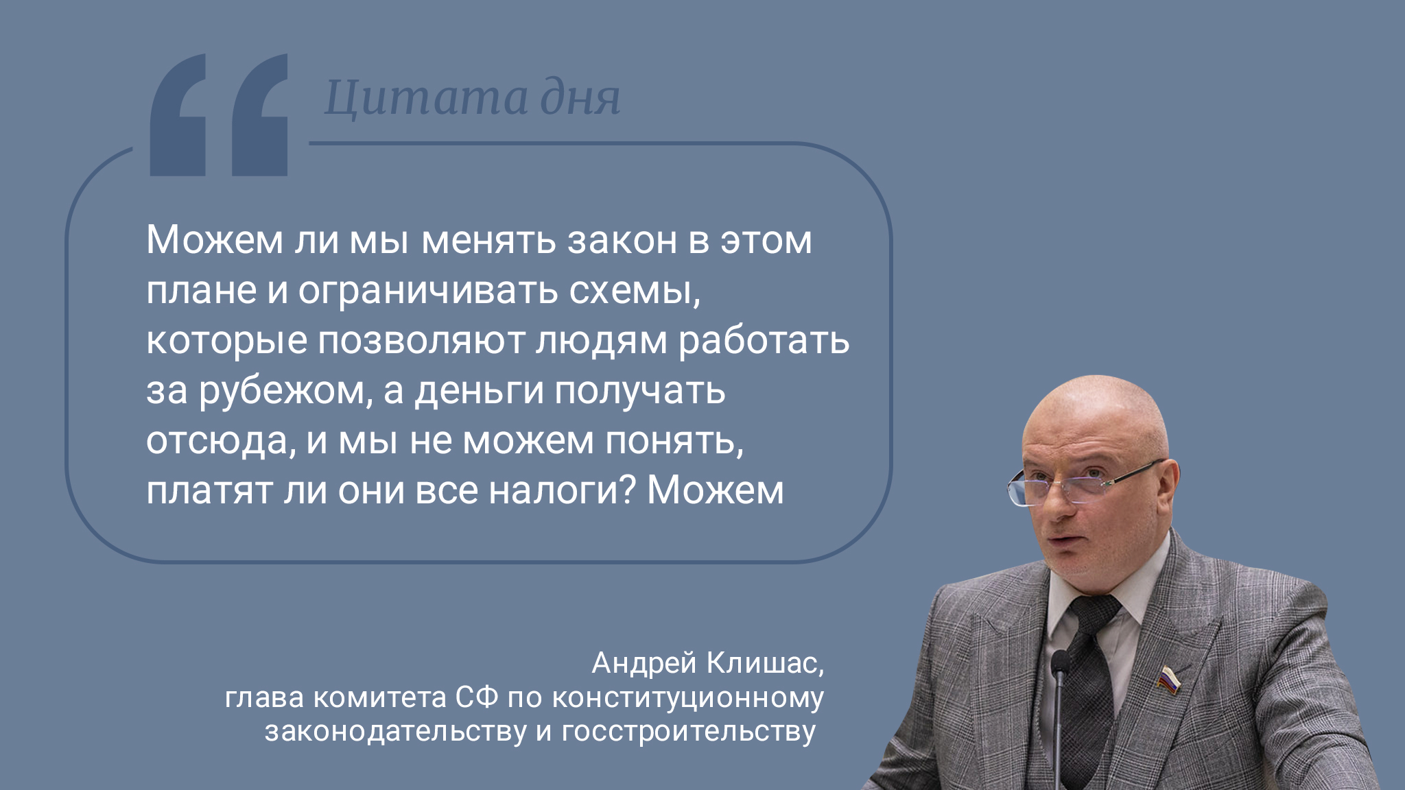 «Можем ли мы менять закон в этом плане и ограничивать схемы, которые позволяют людям работать за рубежом, а деньги получать отсюда, и мы не можем понять, платят ли они все налоги? Можем».