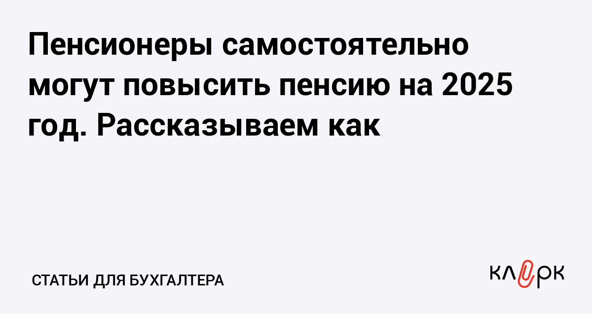 Пенсионеры самостоятельно могут повысить пенсию на 2025 год. Рассказываем как