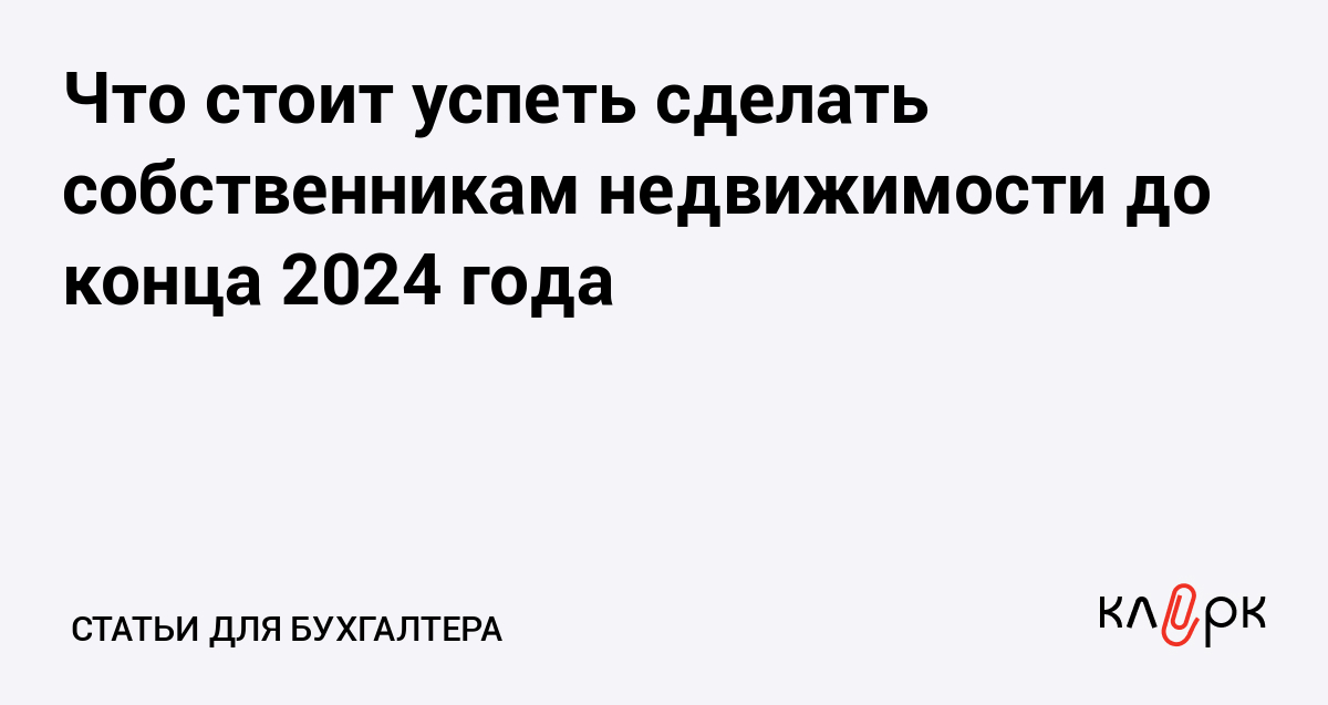 Что стоит успеть сделать собственникам недвижимости до конца 2024 года