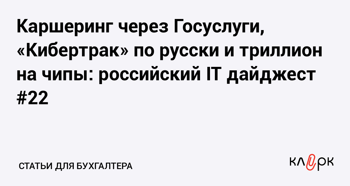 Каршеринг привязывают к Госуслугам, государство собирает триллион на отечественную микроэлектронику, ИИ в CRM становится почти полноценным сотрудником — все это в свежем новом выпуске российского IT-дайджеста.