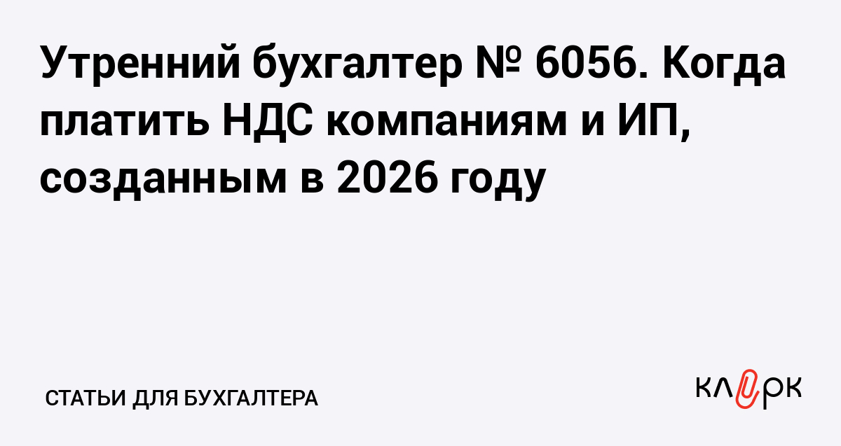29 Нужно ли платить НДС компаниям и ИП, созданным в 2026 году: пример от ФНС