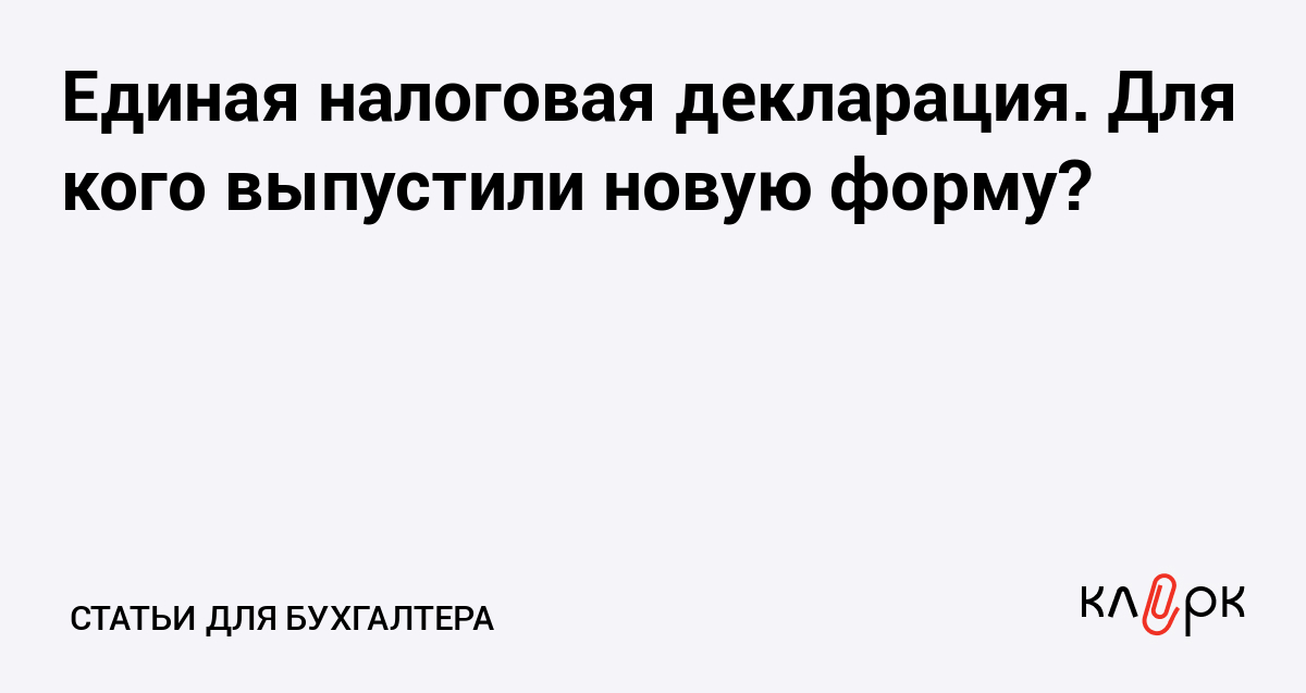 Единая налоговая декларация. Для кого выпустили новую форму?