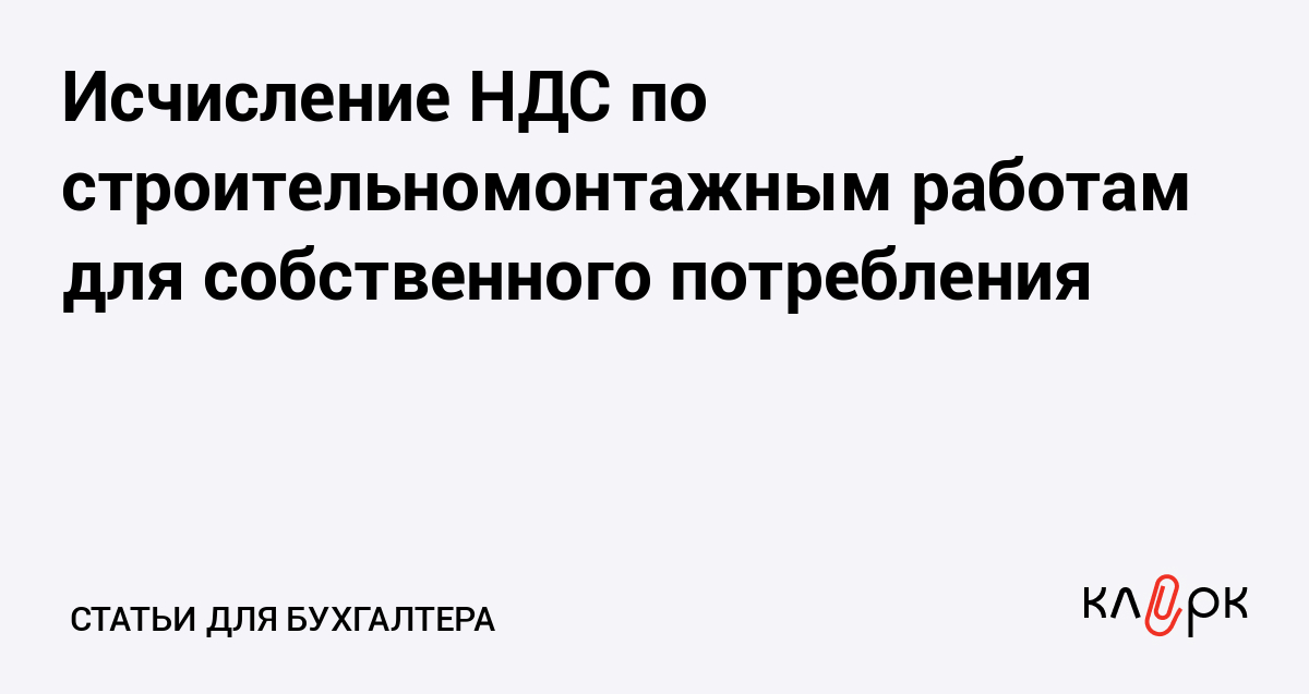 Исчисление НДС по строительномонтажным работам для собственного потребления