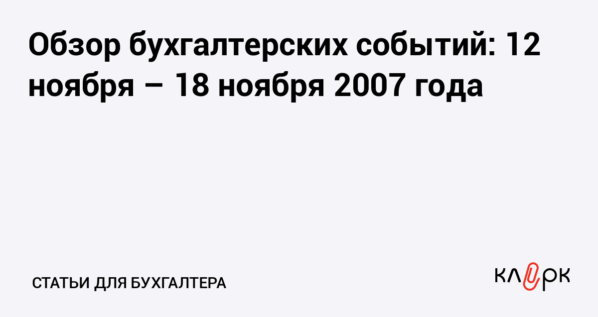 Обзор бухгалтерских событий: 12 ноября – 18 ноября 2007 года
