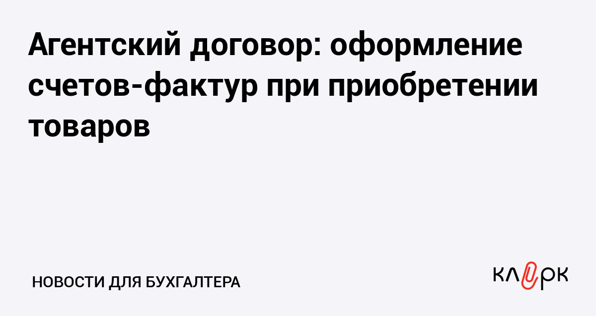 Агентский договор: оформление счетов-фактур при приобретении товаров