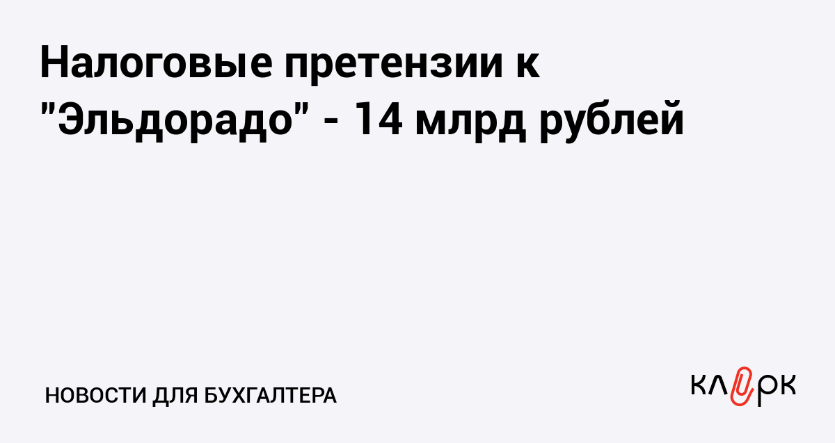 ФНС завершила проверку торговой сети «Эльдорадо», и определила налоговые претензии к компании - 14 млрд рублей.