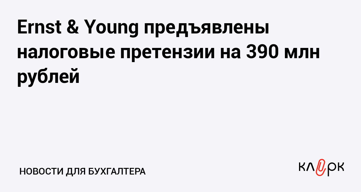 Ernst & Young предъявлены налоговые претензии на 390 млн рублей