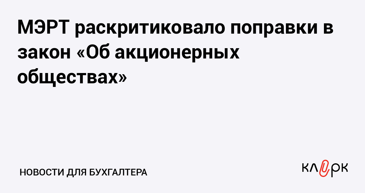 МЭРТ раскритиковало поправки в закон «Об акционерных обществах»