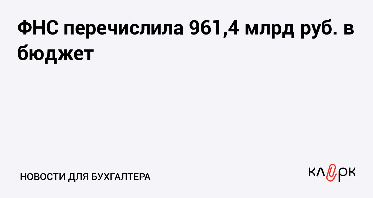 ФНС перечислила 961,4 млрд руб. в бюджет