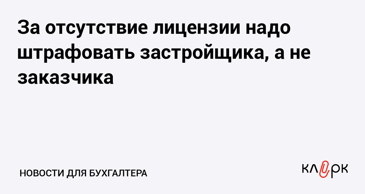 За отсутствие лицензии надо штрафовать застройщика, а не заказчика