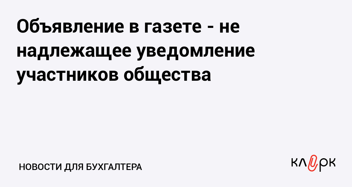 Объявление в газете - не надлежащее уведомление участников общества