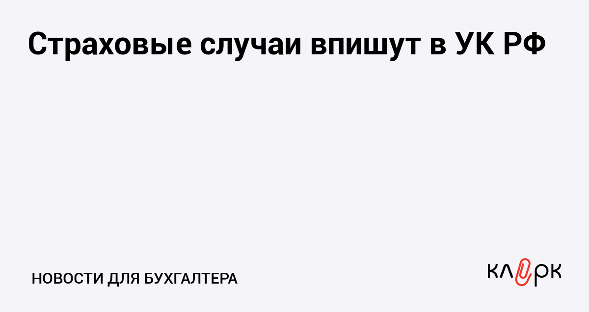 Минфин совместно с Всероссийским союзом страховщиков разработал поправки в статьи 172-ю и 182-ю УК РФ, вводящие наказания за страховые преступления — деятельность без лицензии, неисполнение обязательств при банкротстве и обман при страховании.