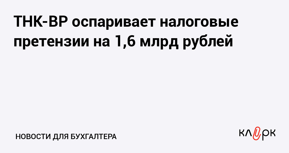 ТНК-ВР оспаривает налоговые претензии на 1,6 млрд рублей
