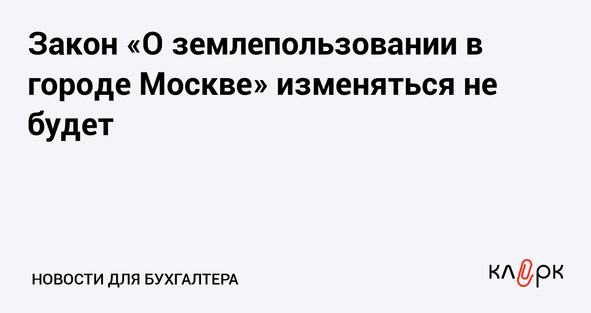 Закон «О землепользовании в городе Москве» изменяться не будет