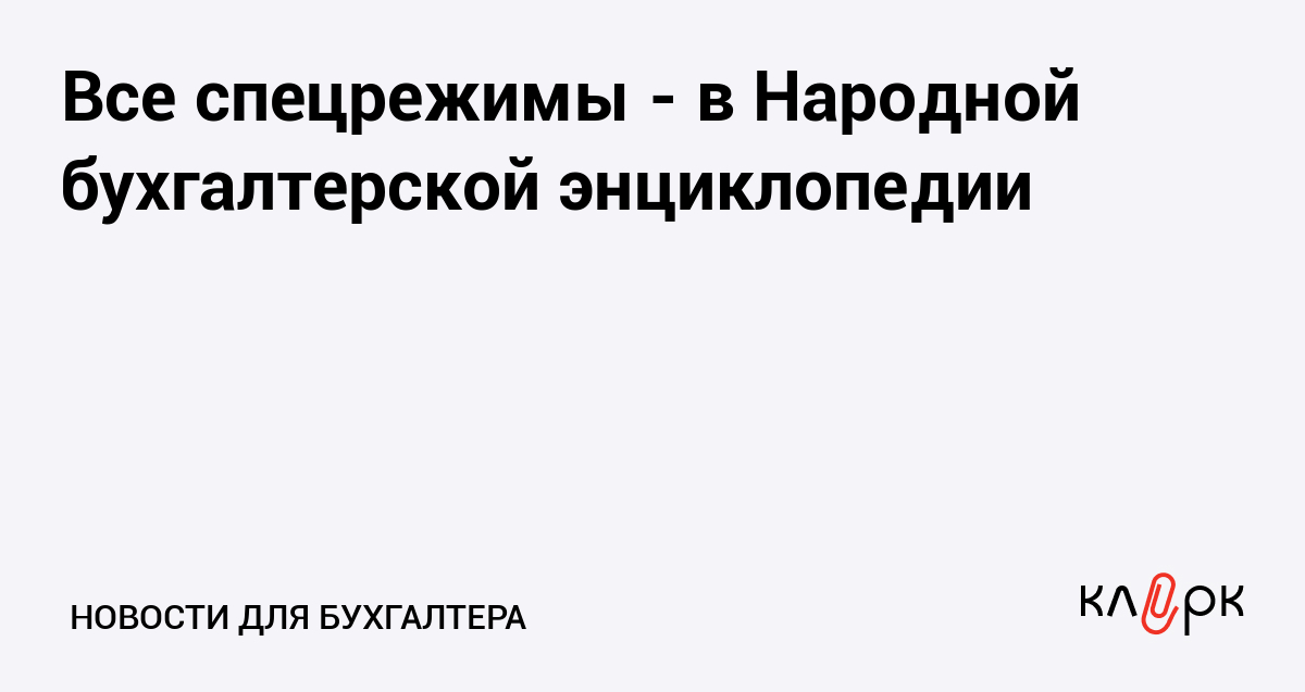 Закончена работа над разделами обо всех специальных налоговых режимах в Народной бухгалтерской энциклопедии. Теперь в ней содержится полная информация о: