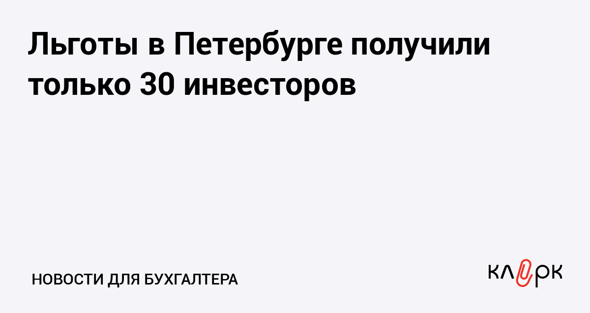 Льготы в Петербурге получили только 30 инвесторов