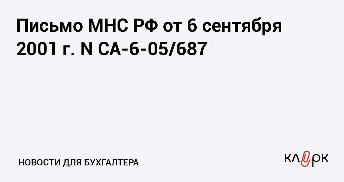 Письмо МНС РФ от 6 сентября 2001 г. N СА-6-05/687