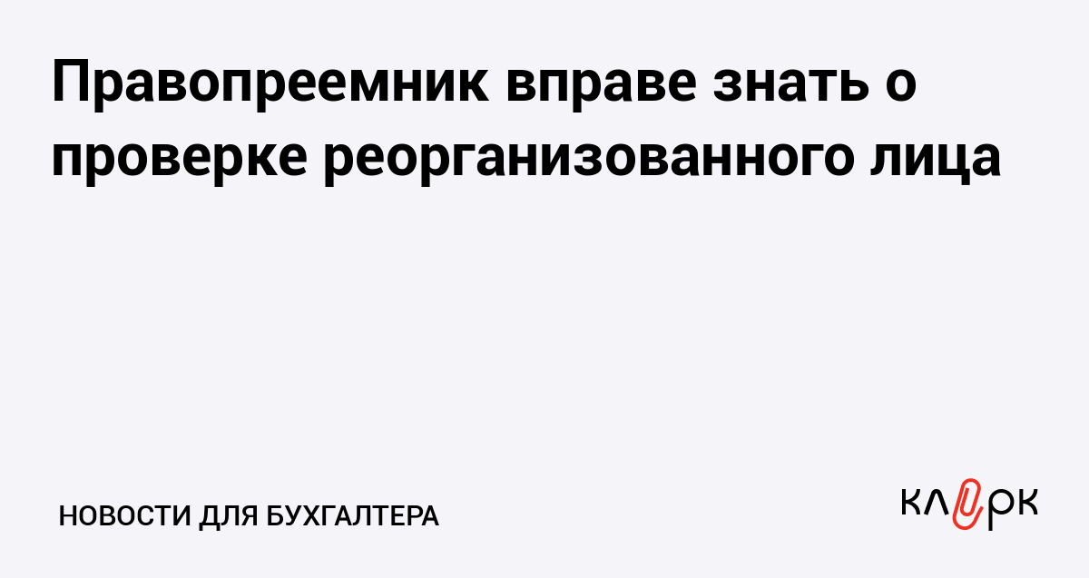 Правопреемник вправе знать о проверке реорганизованного лица