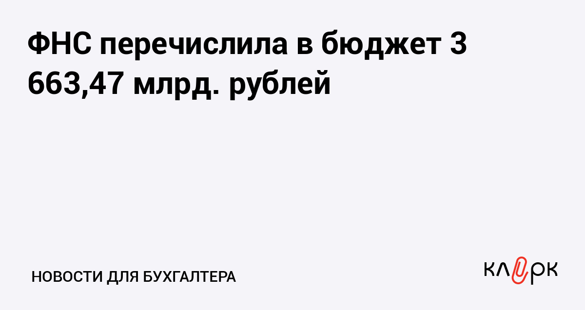 ФНС перечислила в бюджет 3 663,47 млрд. рублей