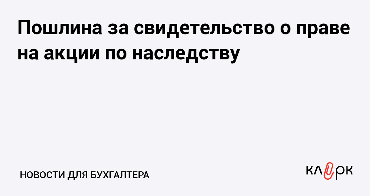 Для исчисления размера госпошлины за выдачу свидетельства о праве на наследство, состоящего из акций, не обращающихся на организованном рынке ценных бумаг, должна применяться рыночная стоимость, сообщил Минфин в Письме от 20/11/2008 № 03-05-05-03/53