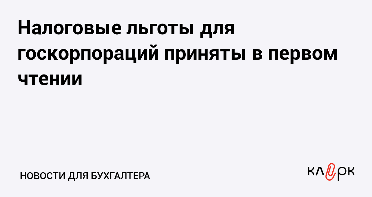 Налоговые льготы для госкорпораций приняты в первом чтении