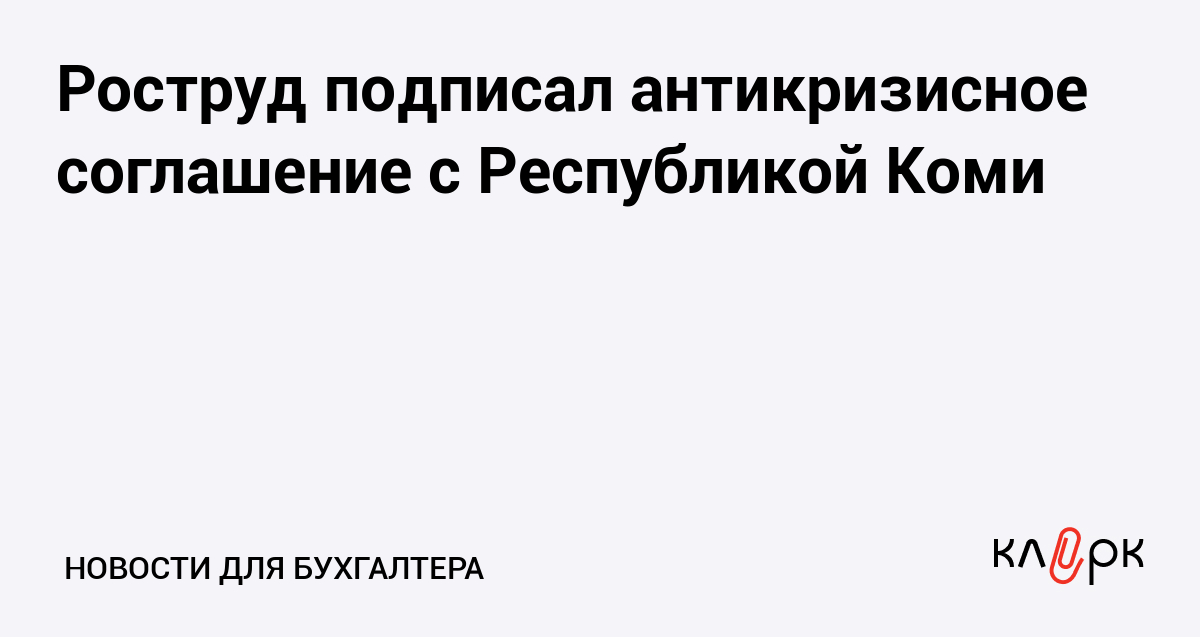 Роструд подписал антикризисное соглашение c Республикой Коми