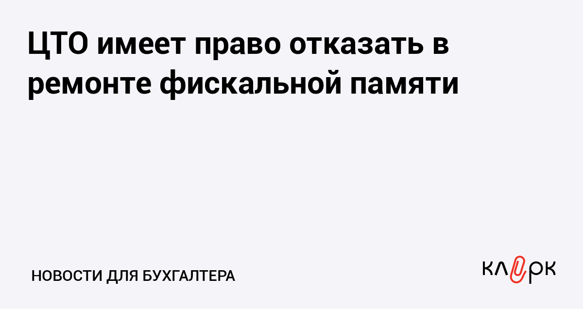 ЦТО имеет право отказать владельцу ККТ в ремонте фискальной памяти, предложив ему приобрести новый модуль фискальной памяти и установить его в ККМ, считает УФНС по Красноярскому краю.