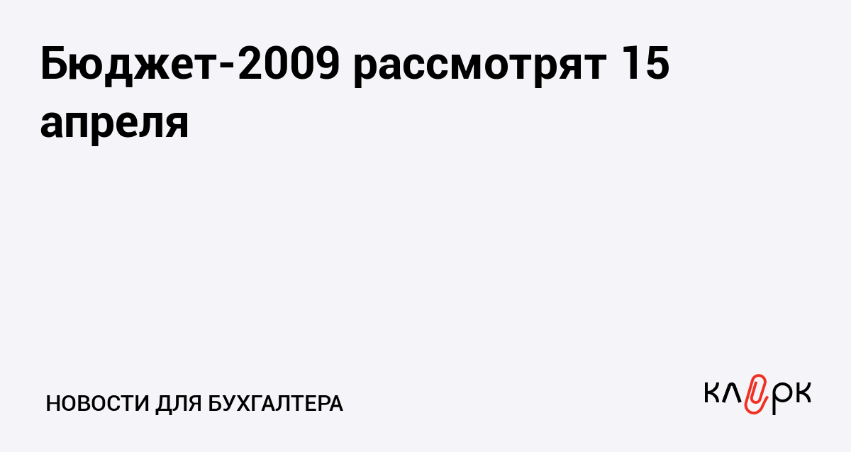 Обсуждение нового бюджета на 2009 г. будет завершено в Госдуме 15 апреля, после чего документ будет внесен на рассмотрение в Совет Федерации. Об этом сообщил спикер Госдумы Борис Грызлов.