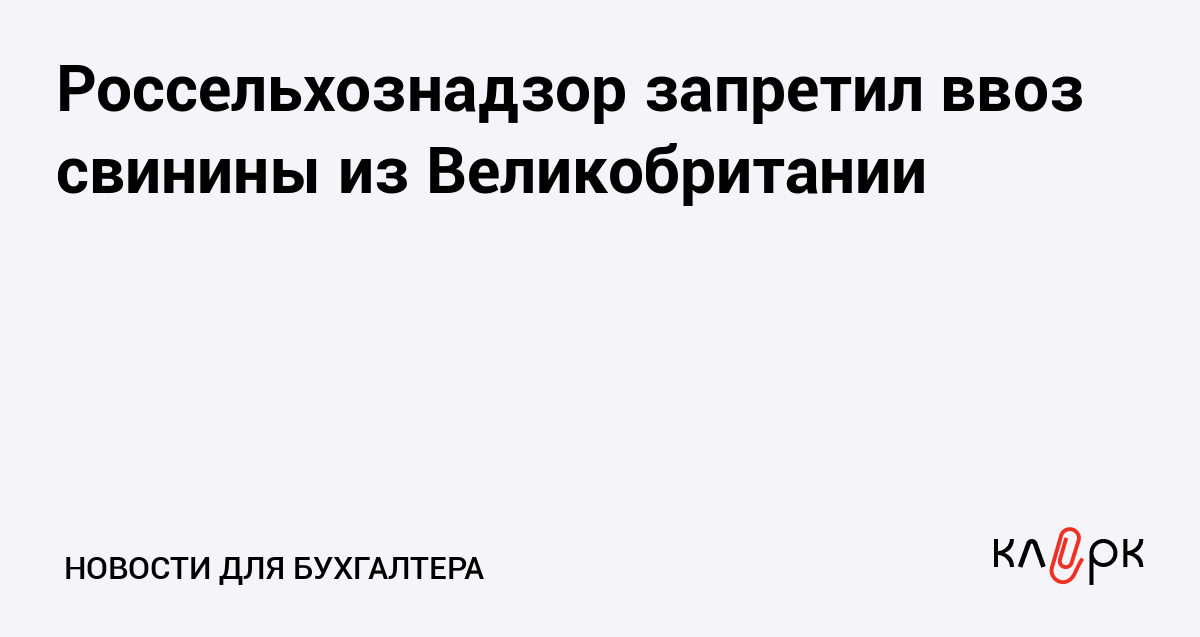 Заместитель руководителя Федеральной службы по ветеринарному и фитосанитарному надзору, главный ветеринарный инспектор РФ Николай Власов, объявил о внесении Великобритании в список стран, ввоз сырой свинины из которых в Россию запрещен, сообщает РосБизнесКонсалтинг.