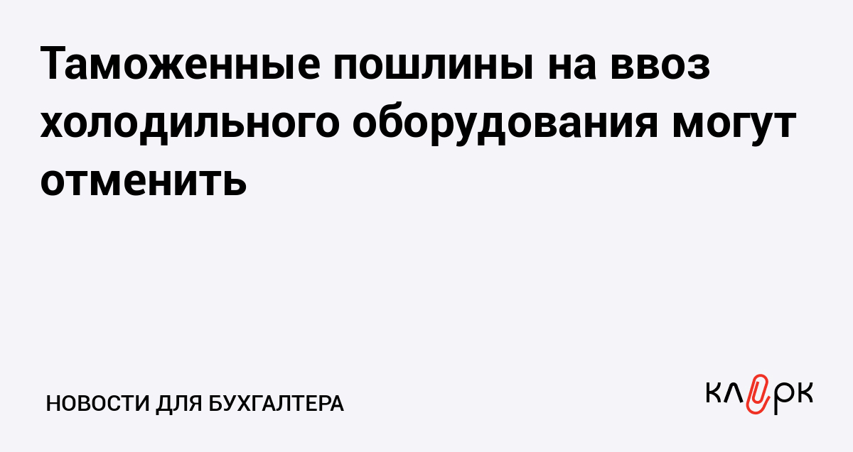 Таможенные пошлины на ввоз холодильного оборудования могут отменить