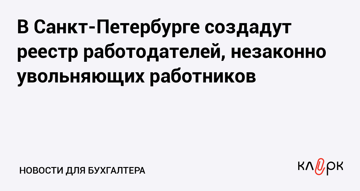 В Санкт-Петербурге создадут реестр работодателей, незаконно увольняющих работников