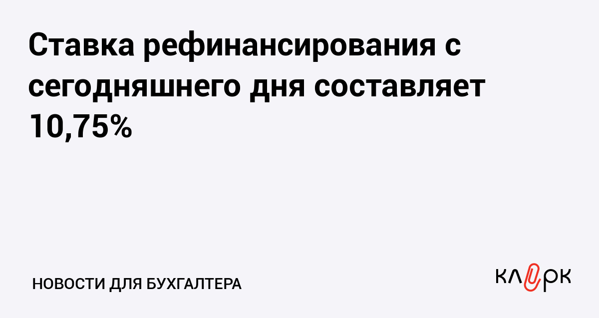 Ставка рефинансирования с сегодняшнего дня составляет 10,75%