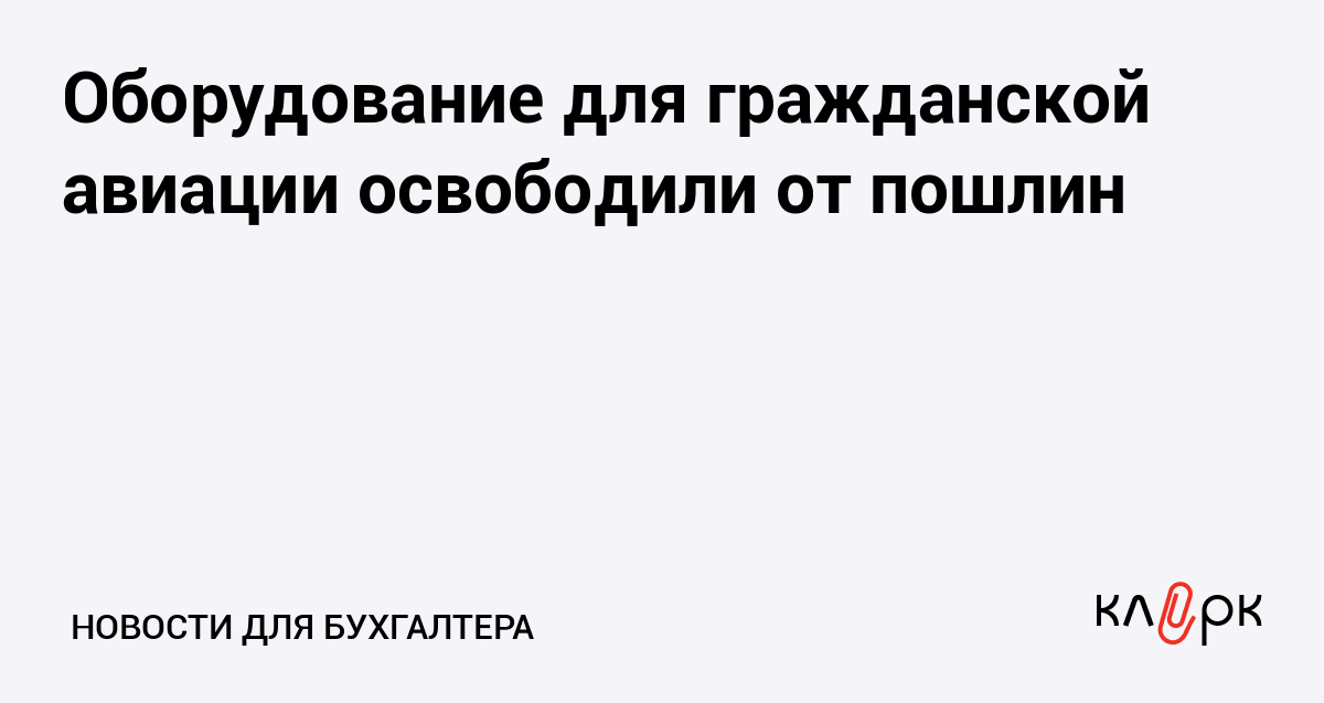 Согласно документу с 21 сентября 2009 года на отдельные виды запасных частей, агрегатов и оборудования для гражданской авиации устанавливается нулевая таможенная пошлина.