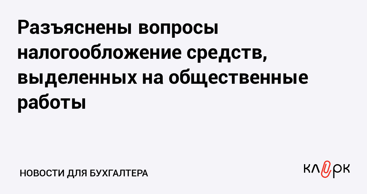 Разъяснены вопросы налогообложение средств, выделенных на общественные работы