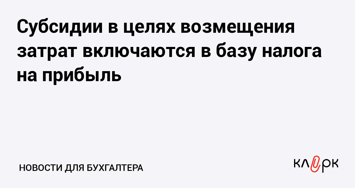Субсидии в целях возмещения затрат включаются в базу налога на прибыль