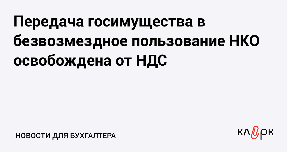 Передача госимущества в безвозмездное пользование НКО освобождена от НДС