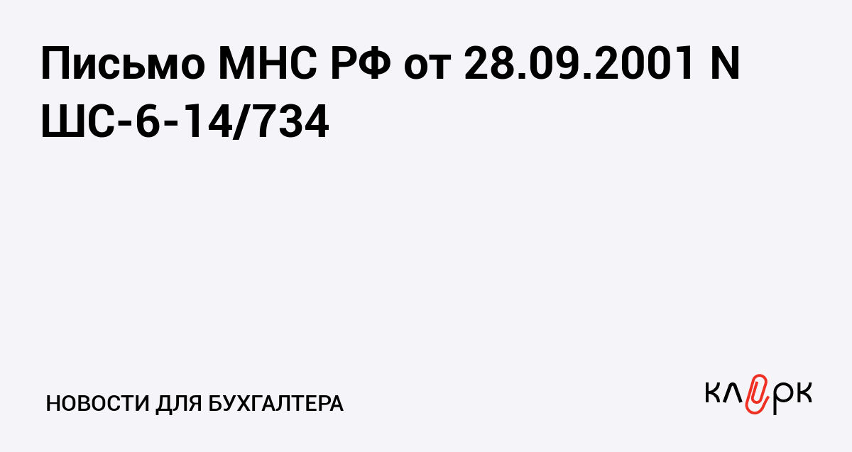 Письмо МНС РФ от 28.09.2001 N ШС-6-14/734