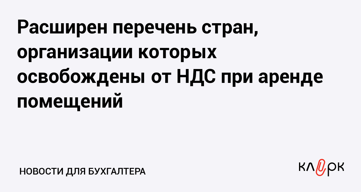 Расширен перечень стран, организации которых освобождены от НДС при аренде помещений