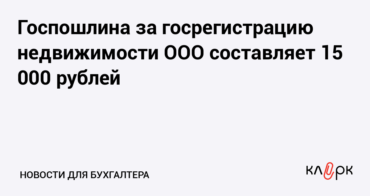Госпошлина за госрегистрацию недвижимости ООО составляет 15 000 рублей