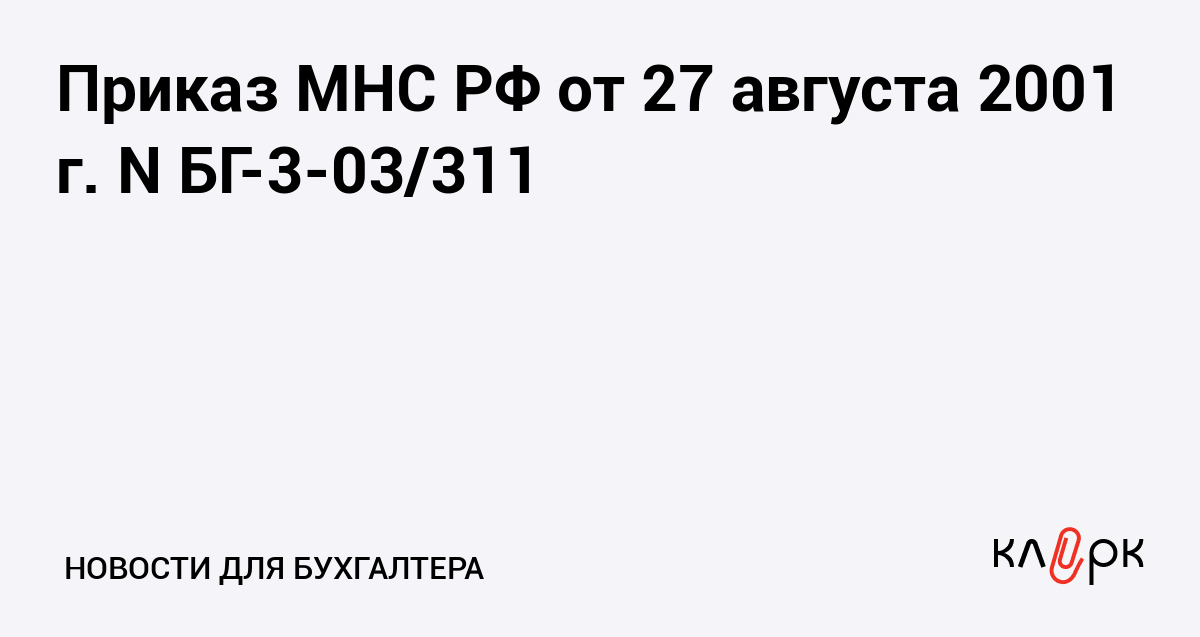 Приказ МНС РФ от 27 августа 2001 г. N БГ-3-03/311