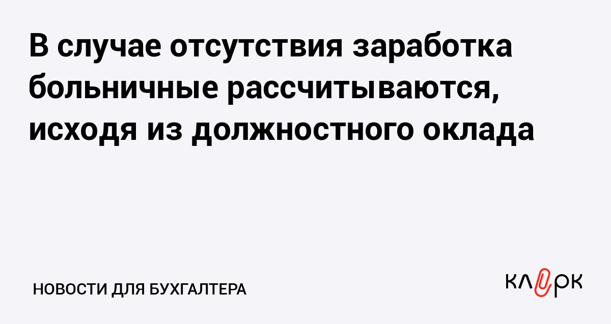 В случае отсутствия заработка больничные рассчитываются, исходя из должностного оклада