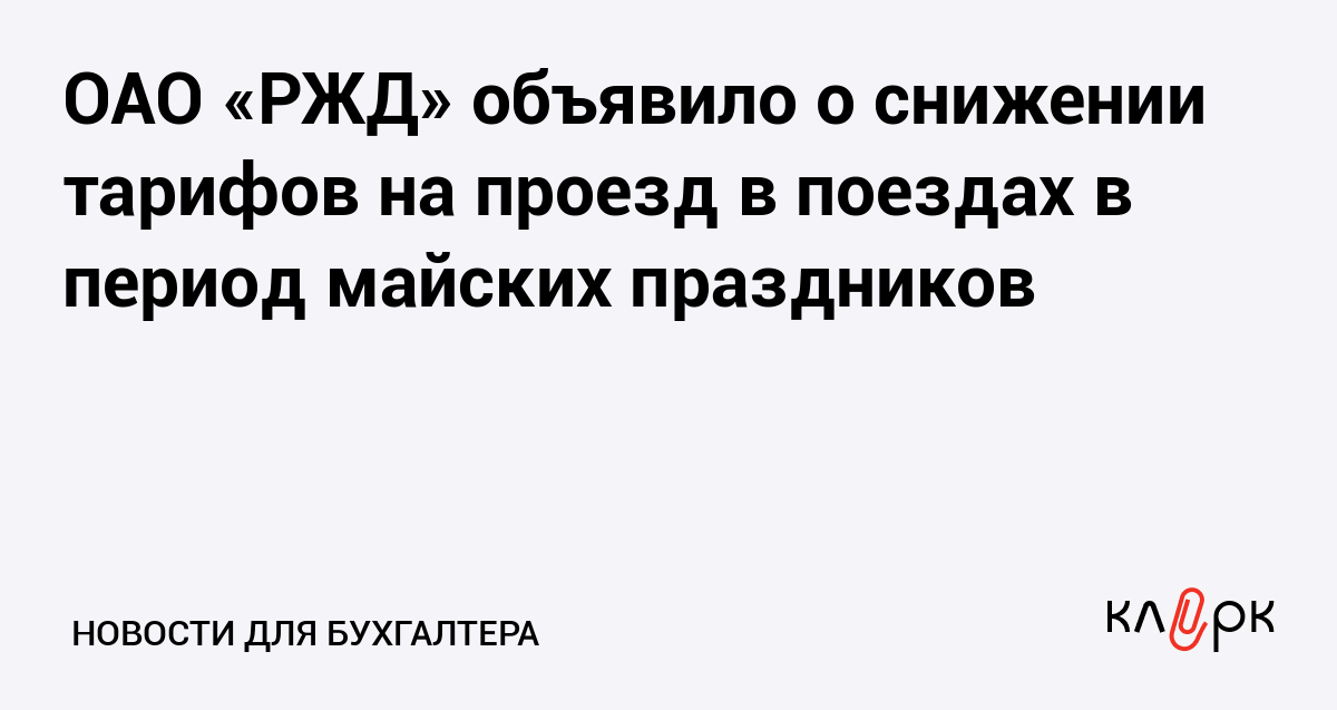 ОАО «РЖД» объявило о снижении тарифов на проезд в поездах в период майских праздников