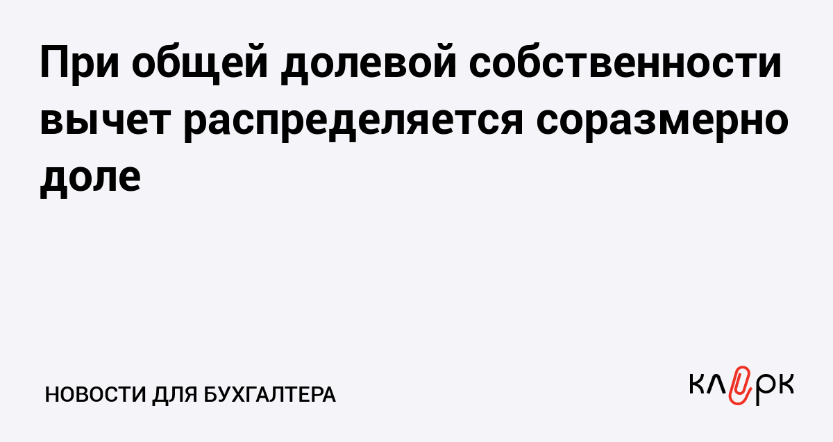 При общей долевой собственности вычет распределяется соразмерно доле