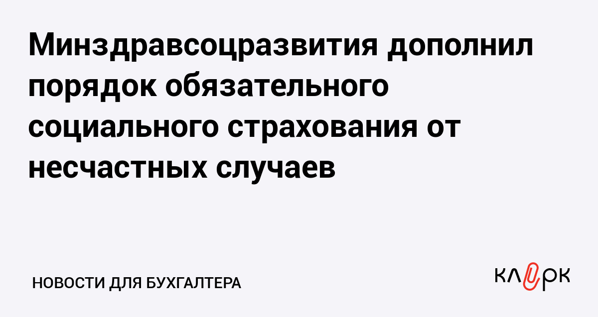 Минздравсоцразвития дополнил порядок обязательного социального страхования от несчастных случаев