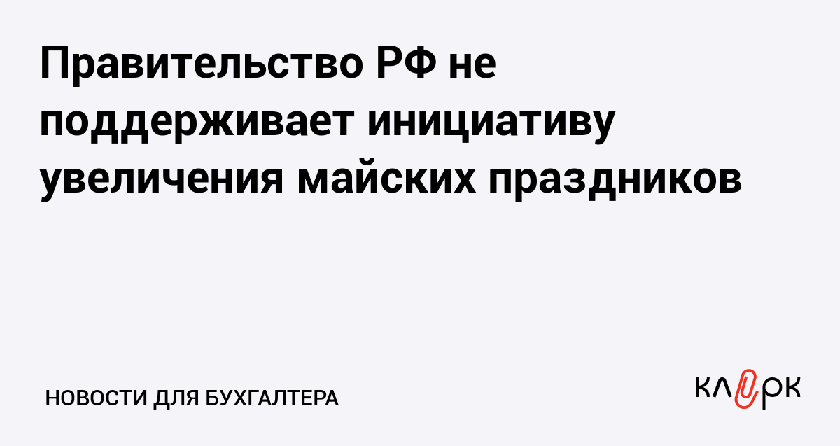 Правительство РФ не поддерживает инициативу увеличения майских праздников