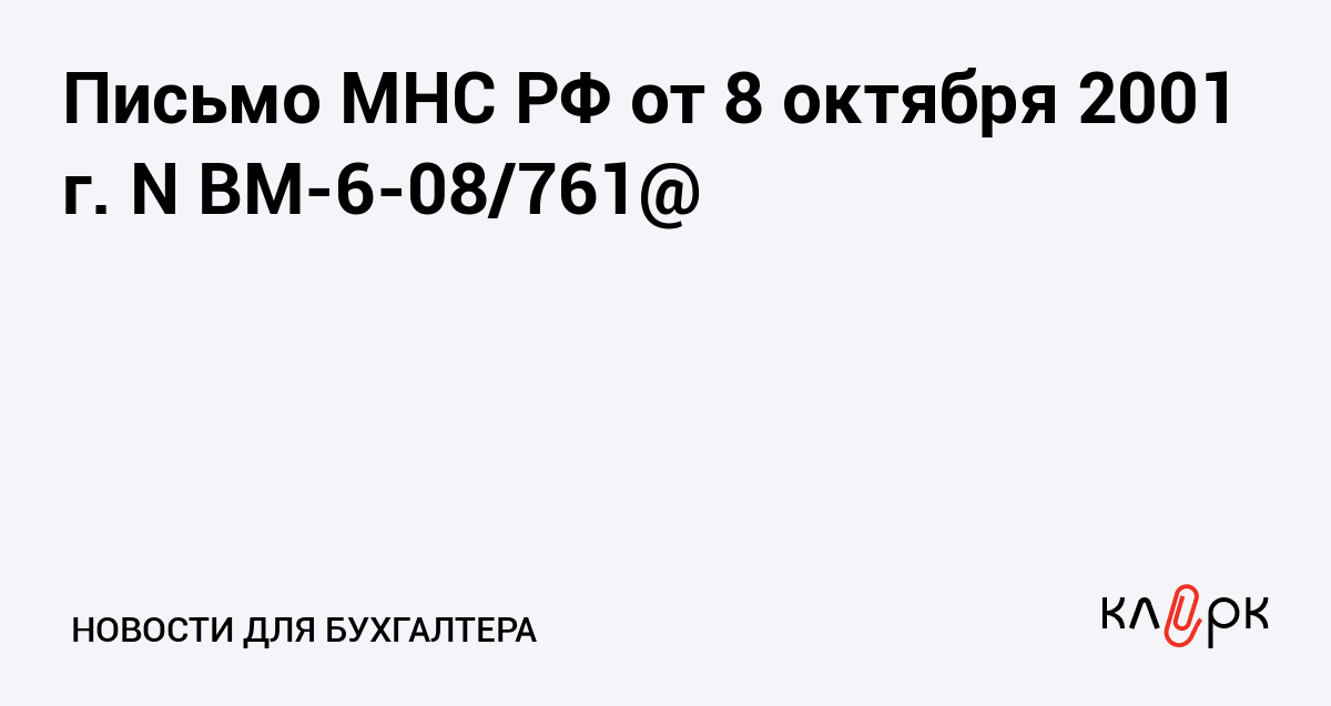 Письмо МНС РФ от 8 октября 2001 г. N ВМ-6-08/761@
